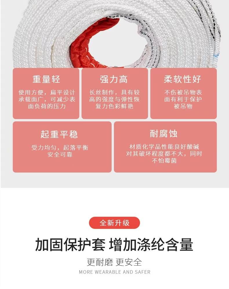 轻便柔软:重量是平等金属吊索具的25%该吊带非常易于支配、搬运和蕴藏。假如圆形吊装带套管上有大的割伤必需经由检查,不可以修复或继续使用。