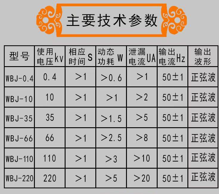 1.10KV型 输出电压:工频0-4KV(10KV启动电压1.5-4KV)2.6-35KV型 输出电压:工频0-12KV(35KV启动电压5.25-14KV) 3.6-110KV型输出电压:工频0-35KV(110KV启动电压16.5-44KV)