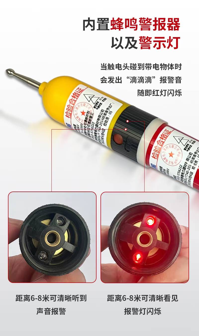 1. 使用前检查: 确认验电器在有效校验期内(高压验电器需定期试验,通常每6个月或1年一次)。 自检功能测试(高压验电器需按下自检按钮确认声光报警正常)。 检查绝缘部分无破损、污垢或受潮。