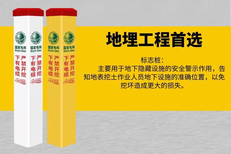 塑料警示桩(PE/PVC):轻便、耐腐蚀,适用于临时施工或短期警示。