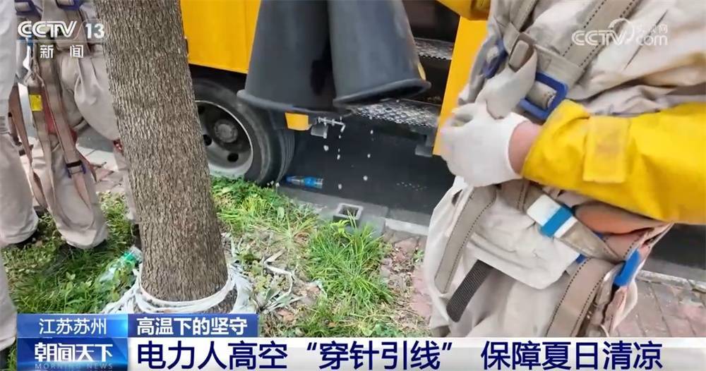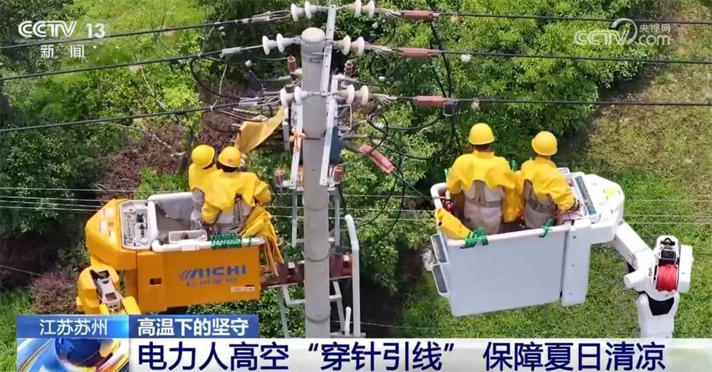 江苏苏州:电力人高空“穿针引线” 保障夏日清凉