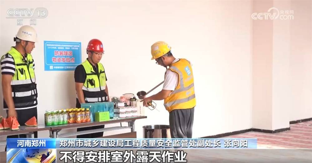 持续高温给工程建设带来了不小的挑战。记者在郑州一施工现场看到,项目方已暂停白天露天作业,仅保留了部分室内的装饰装修施工。施工现场还设置了防暑降温物资发放点,准备了藿香正气水、仁丹等防暑药品,以及绿豆汤、西瓜等。