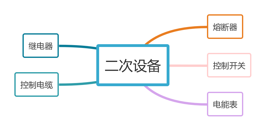 二次设备:指对一次设备的工作进行监测、控制、调节、保护以及为运行、维护人员提供运行工况或生产指挥信号所需的低压电气设备。如熔断器、控制开关、电能表、继电器、控制电缆等。由二次设备相互连接,构成对一次设备进行监测、控制、调节和保护的电气设备称为二次设备。