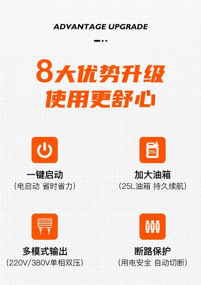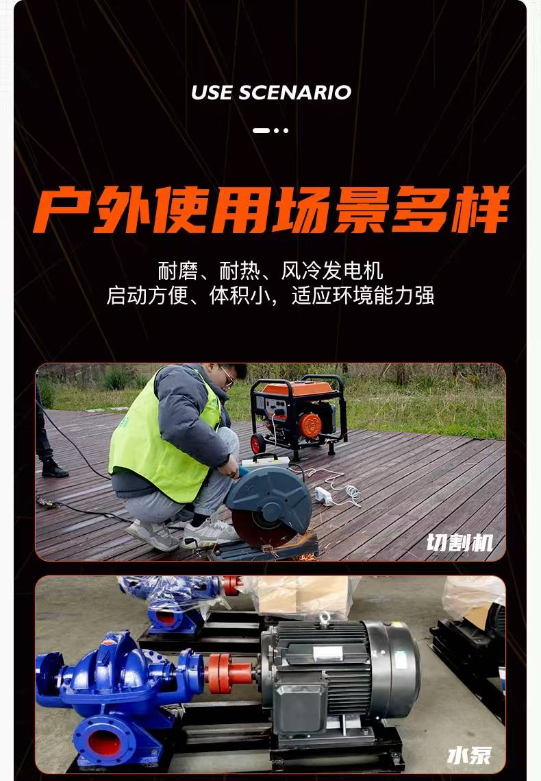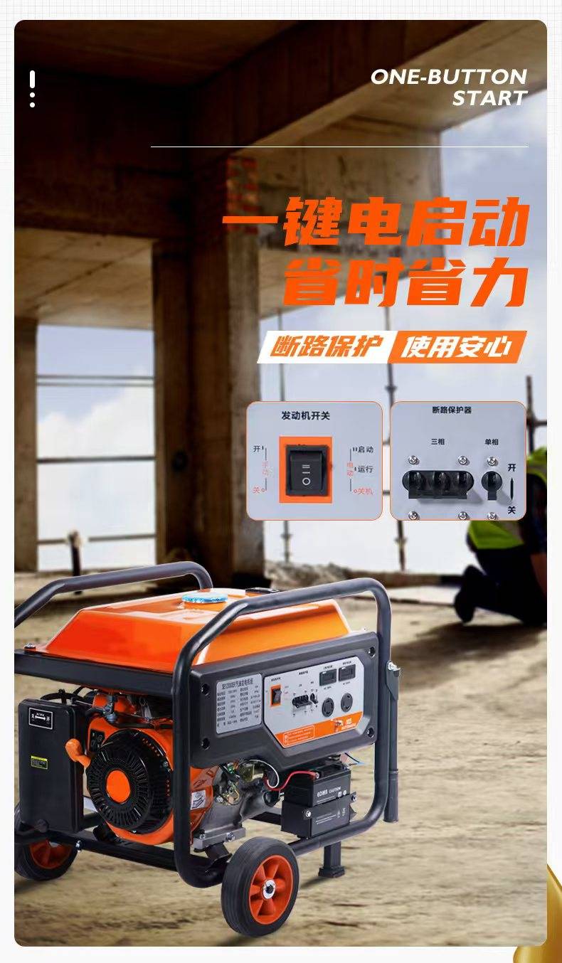 便携式发电机是一种轻便、可移动的电力供应设备,能够在断电、户外活动或紧急情况下提供稳定可靠的电力支持。适用于家庭备用电源、露营旅行、工地施工、户外演出等多种场景,满足不同用户的电力需求。